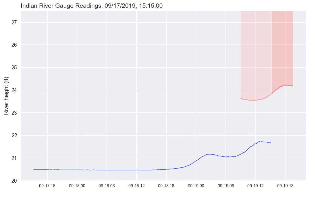 - The light red region shows how close the river has been to a critical period over the last 6 hours.